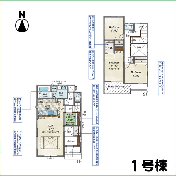 土地面積 129.86㎡ 土地面積(坪) 39.28坪 建物延床面積 103.50㎡ 建物延床面積 31.30坪 間取り 3LDK+WIC 築年月 2025年9月完成